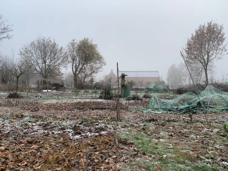Nov 2022: De samentuin wordt nu helemaal winterklaar gemaakt. De overblijvende gewassen worden geoogst en/of verwijderd. De bedden worden bedekt met bladeren of groenafval. Met vers hakselhoutsnippers leggen we ook de paadjes opnieuw aan. Zo is het weer helemaal duidelijk 'tCirkelhof!