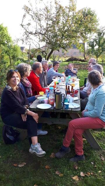 Oct 2022: Gezamenlijke werkdag in 't Cirkelhof met nadien 'Breugeltafel'. Iedereen neemt een hapje en een drankje mee en we genieten van het mooie nazomerweer. Vooral de pompoenwafels waren erg in trek!